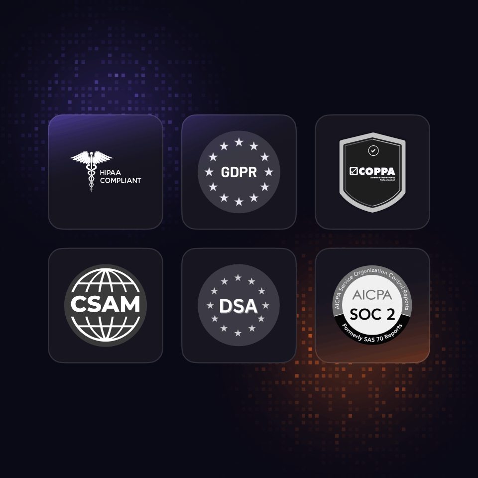 Supports COPPA, DSA, and CSAM-related requirements through data control, moderation, and auditability - configured and governed by your team.