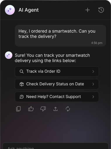 Track everything from conversation health to agent success. Out-of-the-box dashboards help you improve UX, tune logic, and measure ROI - without extra tooling.
