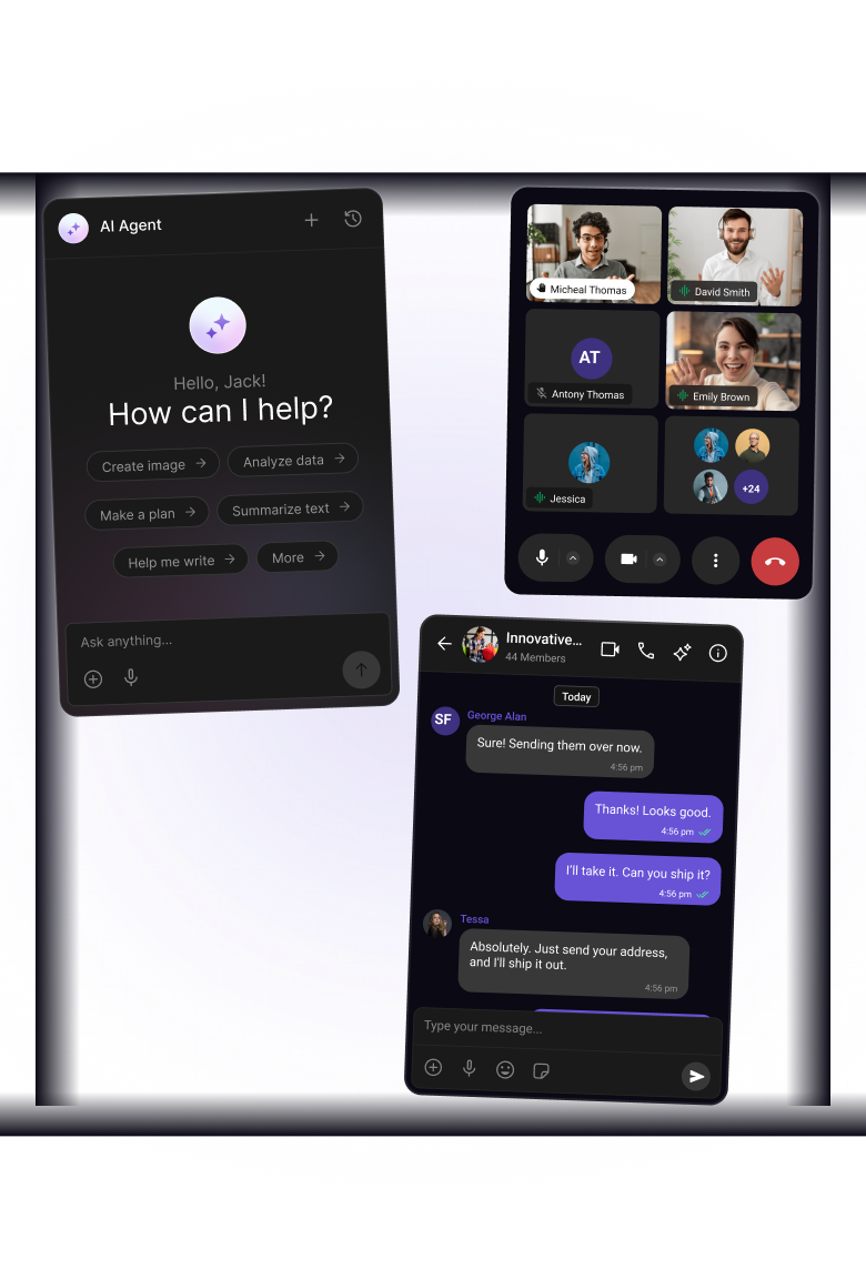 CometChat unifies user-to-user chat, voice and video calls, and user-facing AI agents in one platform — secure, compliant, and built to scale. With guardrails, insights, and notifications baked in, your teams ship faster and your users get the seamless experiences they expect.