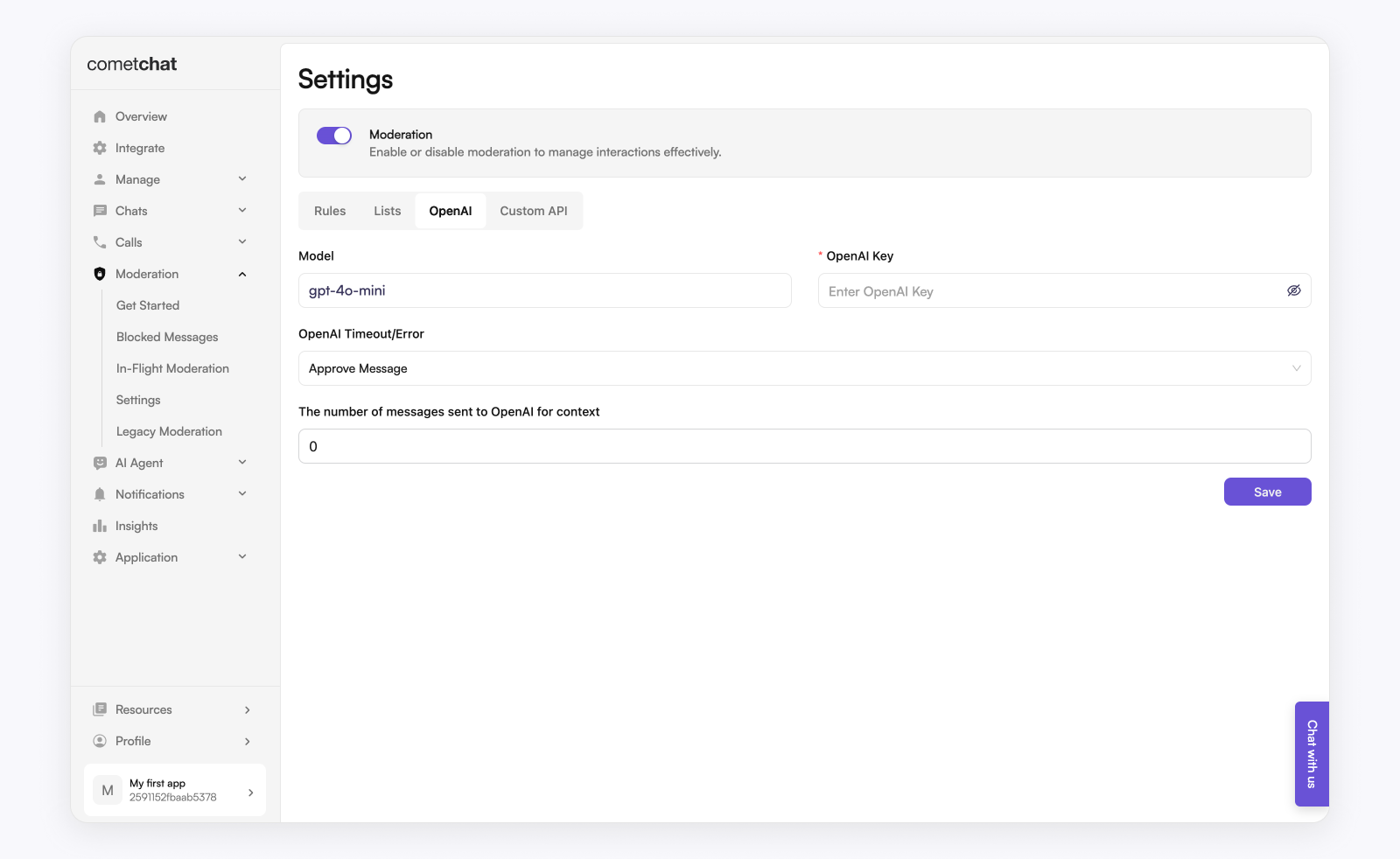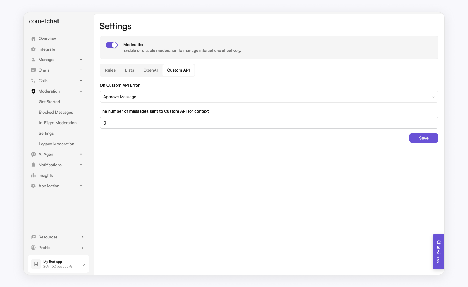 What if your external API fails? CometChat’s built-in rules stay active, ensuring there’s never a gap in your protection.