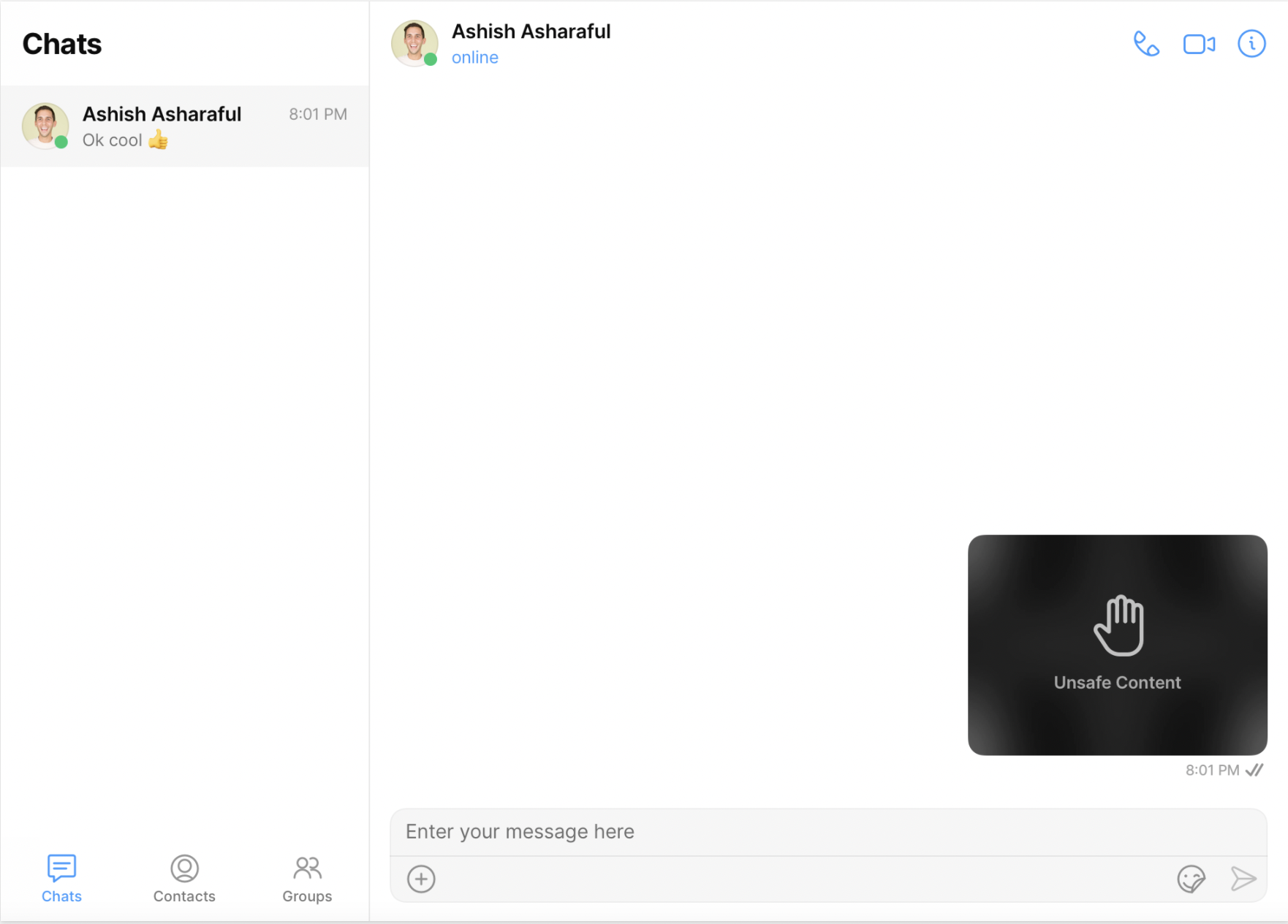 method. Using this metadata, you can fetch information whether the image is safe or unsafe.