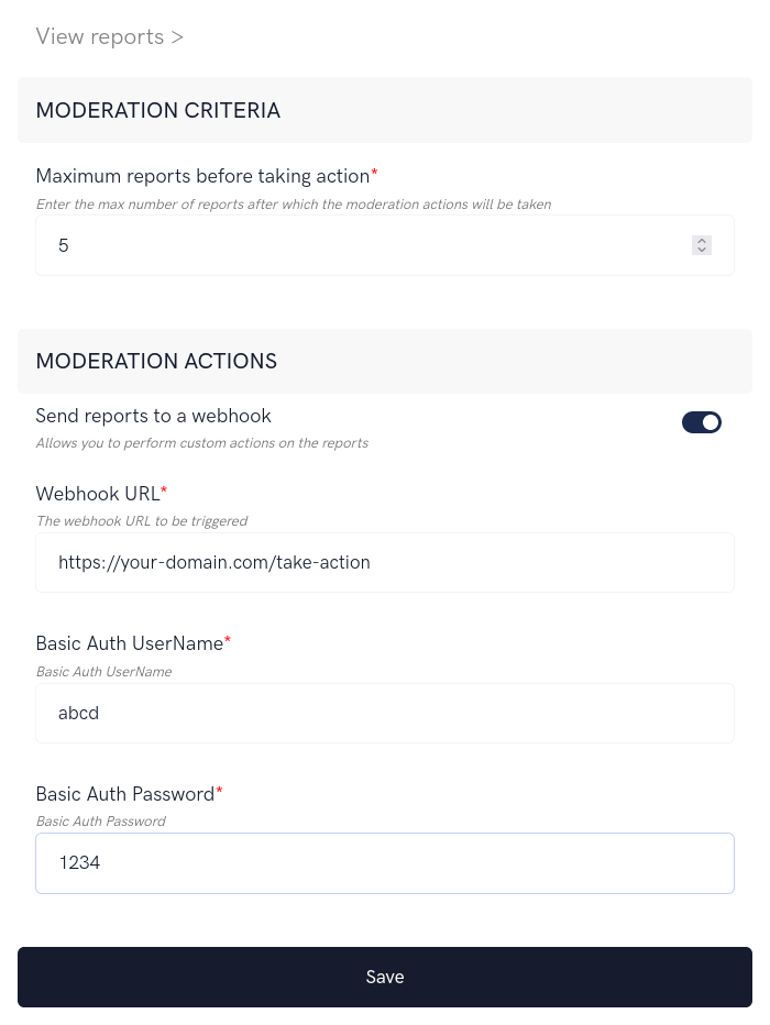 - Moderation criteria: The max number of reports after which you want to be notified.