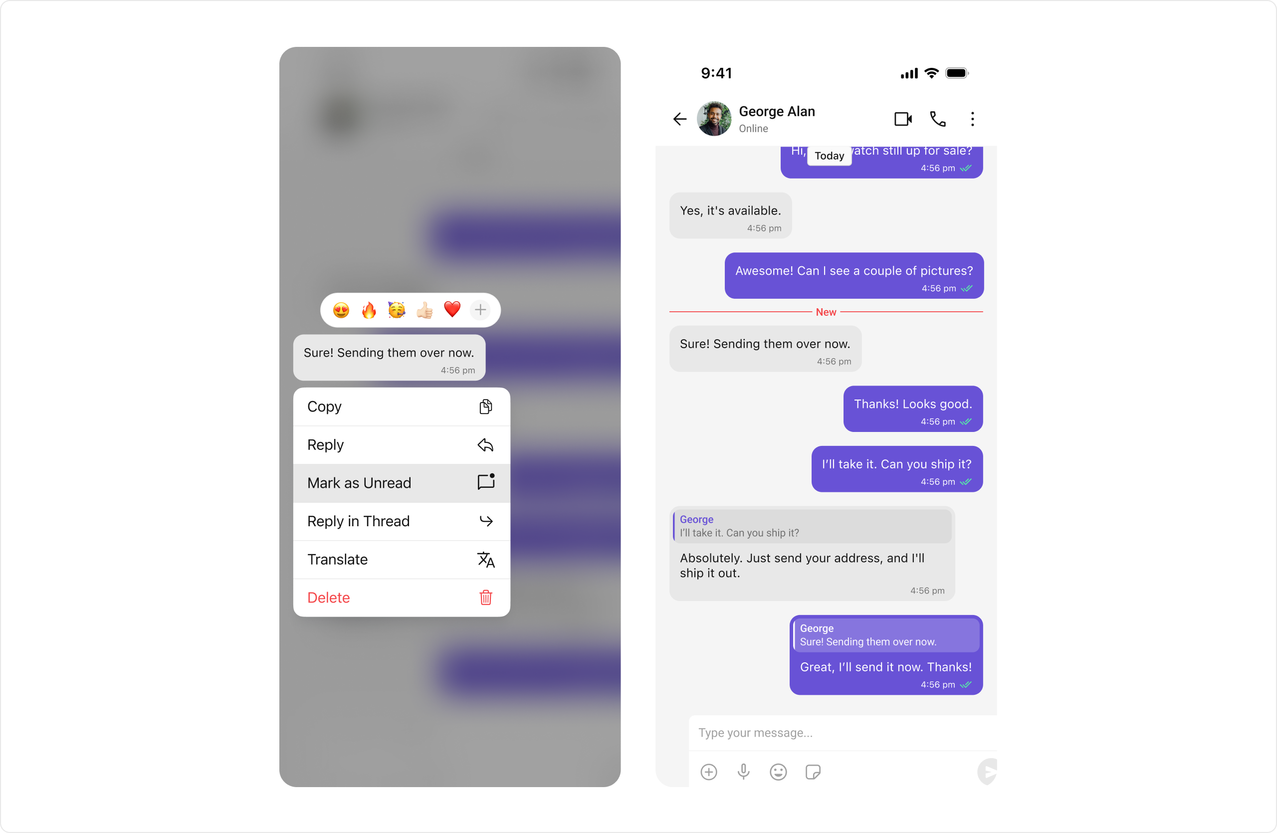 Mark as Unread feature allows users to manually mark messages as unread, helping them keep track of important conversations they want to revisit later. When enabled, the message list can automatically start from the first unread message, making it easier to pick up where you left off.