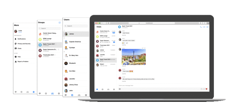 Using the CometChatUI component, you can launch a fully functional chat application. In this component, all the UI Screens and UI Components are interlinked and work together to launch a fully functional chat on your website/application.