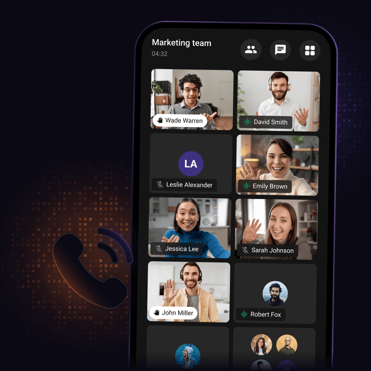 In app voice and video calling with transcription, screen sharing, recording, and private meeting rooms for secure team standups, client calls,and support sessions.