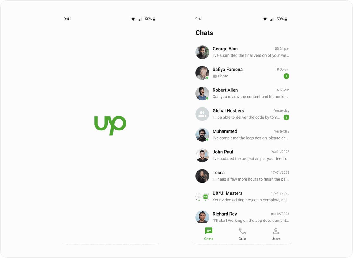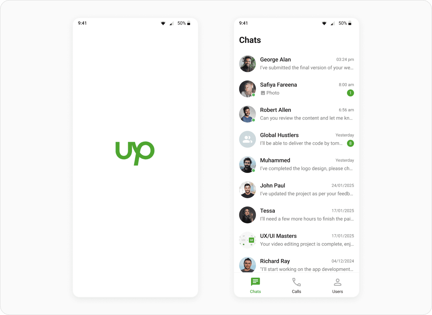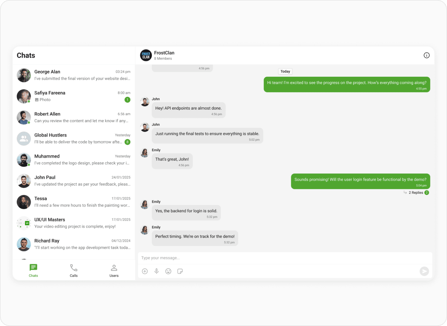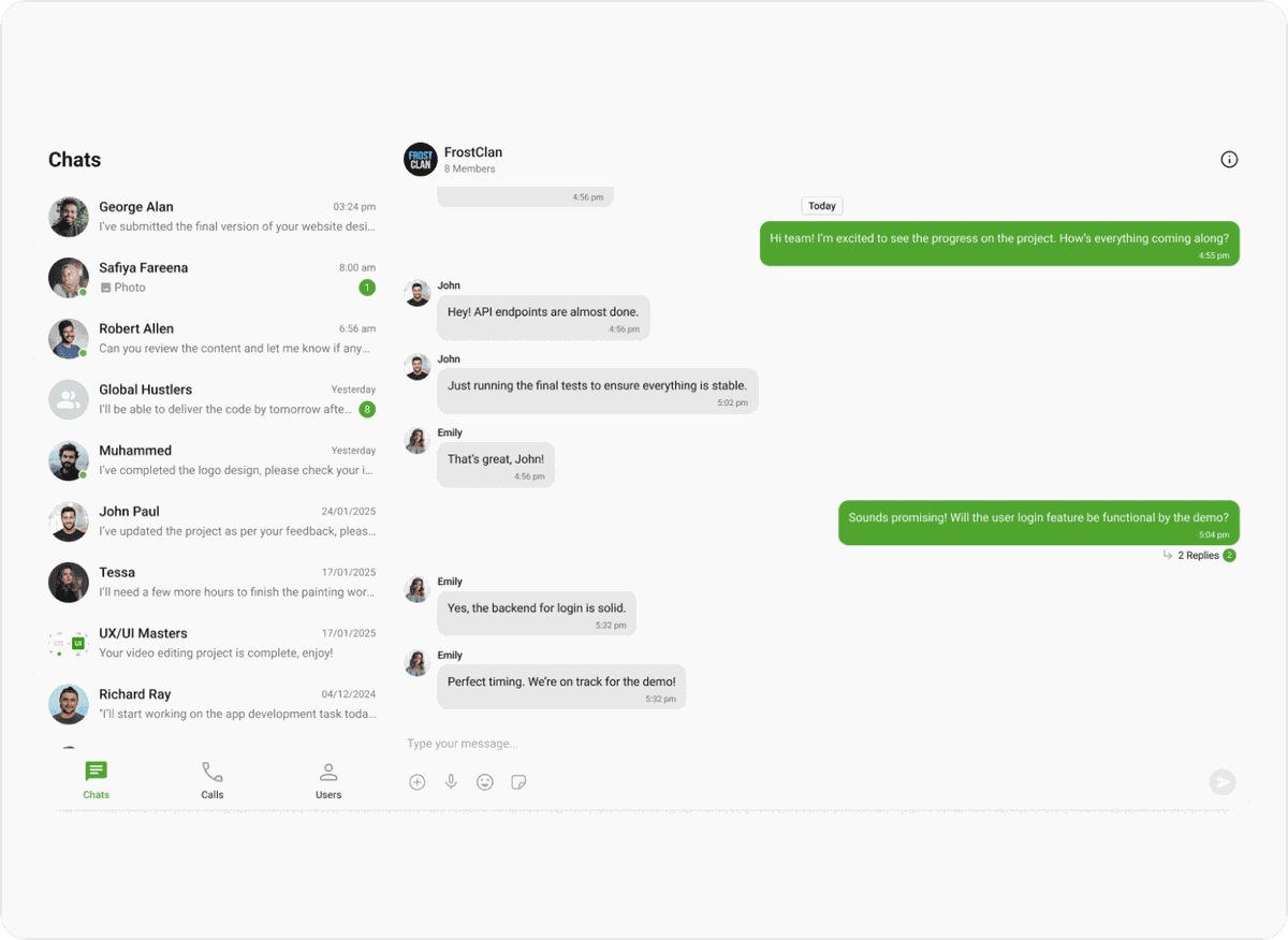 For freelance job platforms, this template allows structured messaging between clients and freelancers. Enable seamless collaboration, project discussions, and contract-based interactions in a professional chat environment.