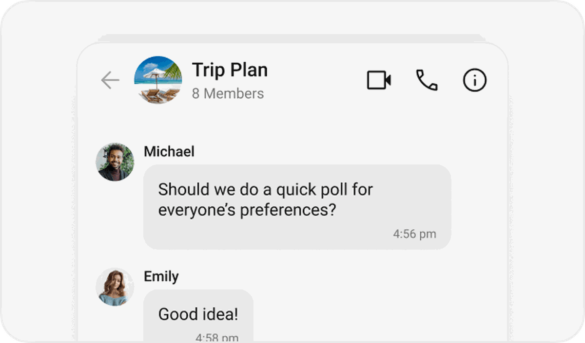 Enable multiple users to communicate in a single conversation, supporting public and private groups.