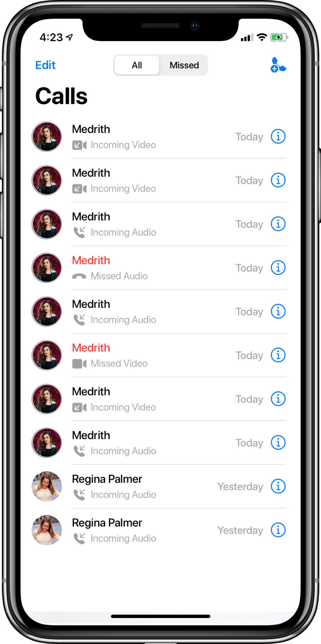 This screen contains a list of recent calls of the user. You can again access this screen in 2 ways -