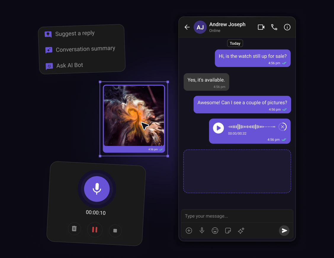 CometChat's comprehensive UI Kits allow users to access advanced chat features including, quoted replies, rich media messaging, typing indicators and more out of the box.