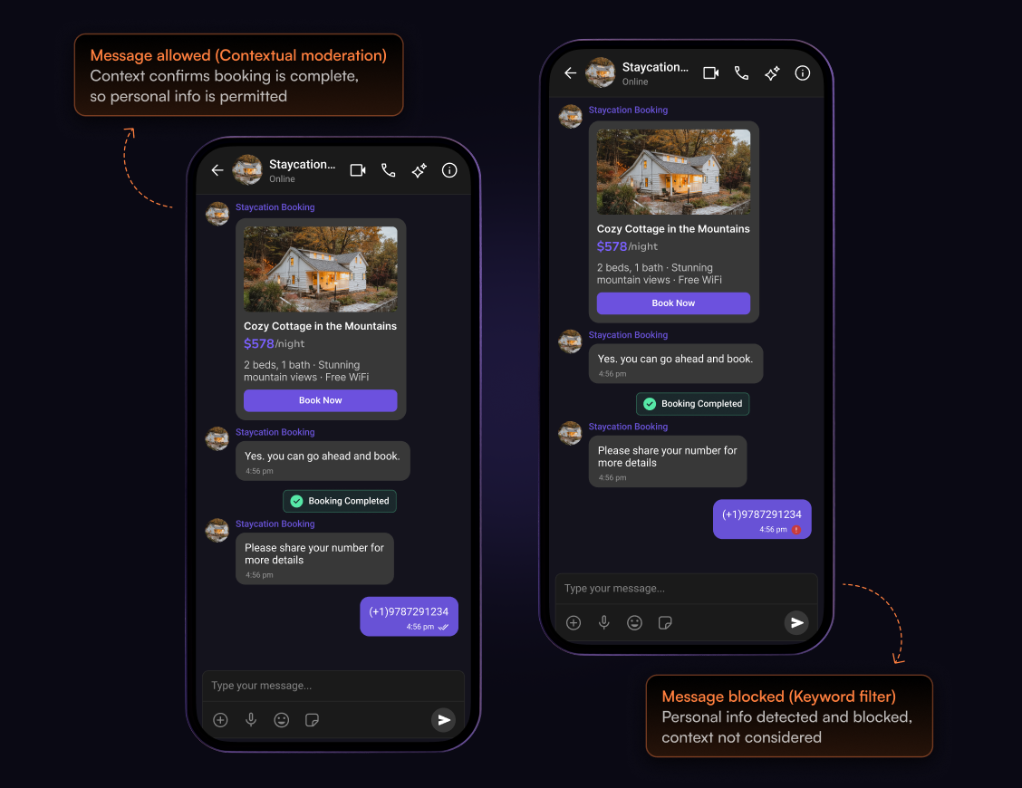 Contextual moderation evaluates entire conversations, not just keywords, to detect harmful content accurately. This reduces false positives and improves platform safety.
